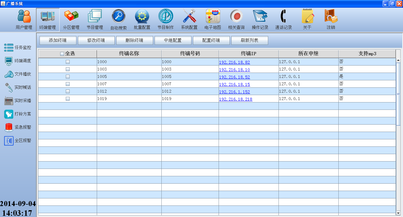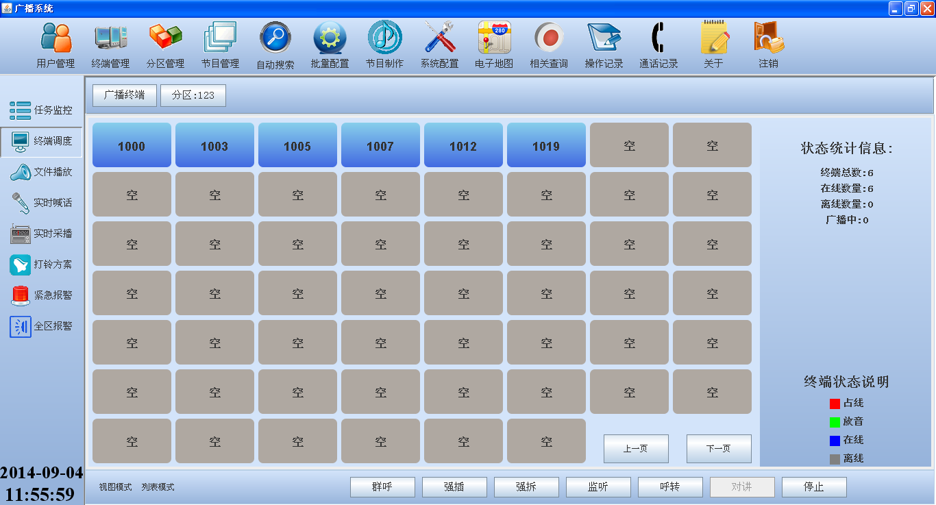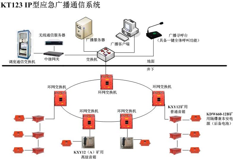 **技术说明书** **文档版本:2.2** ## 发布时间:2019-12-20 #### 版权所有© 北京富力通信息技术有限公司 保留一切权利。 非经本公司书面许可,任何单位和个人不得擅自摘抄、复制本文的部分或全部, 并不得以任何形式传播。 版本 2.1 等级 开放 □内部 □受控 类型 □讨论版 □测试版 正式版 **拟定记录** **拟定日期** **拟定人** **版本号** **审核人** **修订说明** 2018/03/15 王克洋 Version2.1 **分发列表** **发件** **收件** **发布日期** **生效日期**  北京富力通信息技术有限公司 公司地址: 北京市顺义区南彩镇彩达三街一号茂华工场 3 号厂房 2 层(101399) 公司网址: [http://www.fulitong.com.cn](http://www.fulitong.com.cn/) 服务邮箱: [support@fulitong.com.cn](mailto:support@fulitong.com.cn) 服务电话: 010-58237018/19/20 公司传真: 010-58237020 **声 明** 本资料著作权属北京富力通信息技术有限公司所有。未经著作权人书面许可,任何单位或个人不得以任何方式摘录、复制或翻译。 侵权必究。 在本手册中提及的其他产品或公司的名称可能是其各自所有者的商标或商名。在未经北京富力通信息技术有限公司或第三方商标或商名所有者事先书面同意的情况下,本手册不以任何方式授予阅读者任何使用本手册上出现的任何标记的许可或权利。 本产品符合关于环境保护和人身安全方面的设计要求,产品的存放、使用和弃置应遵照产品手册、相关合同或相关国法律、法规的要求进行。 由于产品和技术的不断更新、完善,本资料中的内容可能与实际产品不完全相符, 敬请谅解。如需查询产品的更新情况,请联系当地办事处。 [若需了解最新的资料信息,请访问网站 http://www.fulitong.com.cn](http://www.fulitong.com.cn/) **目录** 1. [前言 4](#_bookmark0) 2. [概述 5](#_bookmark1) 1. [系统建设目标 5](#_bookmark2) 2. [设计原则 5](#_bookmark3) 3. [遵循的规范和标准 6](#_bookmark4) 4. [设备运行环境条件 6](#_bookmark5) 3. [系统介绍 8](#_bookmark6) 1. [系统优势 8](#_bookmark7) 2. [系统主要功能 8](#_bookmark8) 1. [多种广播功能 8](#_bookmark9) 2. [语音通信功能 9](#_bookmark10) 3. [综合管理功能 10](#_bookmark11) 3. [系统架构 14](#_bookmark12) 1. [基于标准 SIP 协议的广播服务器 15](#_bookmark13) 2. [广播客户端及软件 15](#_bookmark14) 3. [通信传输部分 15](#_bookmark15) 4. [终端音箱 15](#_bookmark16) 4. [广播系统布置方案 16](#_bookmark17) 4. [系统主要设备参数 17](#_bookmark18) [4.1 KT123 系统 17](#_bookmark19) * 1. [IP 网络广播控制主机(音频服务器) 18](#_bookmark20) 2. KXY12 矿用普通广播音箱 错误!未定义书签。 3. [KXY12(A)矿用高级广播音箱 19](#_bookmark21) 4. [KDW660/12B 矿用隔爆兼本安直流稳压电源 19](#_bookmark22) 5. [桌面式 IP 广播寻呼台技术规格 20](#_bookmark23) 6. 调度广播音箱 错误!未定义书签。 1. [系统主要设备清单 21](#_bookmark24) 2. 富力通矿用广播系统部分工程案例 **错误!未定义书签。** 3. KT123 广播系统设备资质 **错误!未定义书签。** 1. KT123 系统安标证书 **错误!未定义书签。** 2. KXY12 矿用广播音箱安标证书 **错误!未定义书签。** 3. KXY12 矿用广播音箱防爆证书 **错误!未定义书签。** 4. KXY12(A)矿用广播音箱煤安证书 **错误!未定义书签。** 5. KXY12(A)矿用广播音箱防爆证书 **错误!未定义书签。** 6. KDW660/12B 矿用隔爆兼本安电源煤安证书 **错误!未定义书签。** 7. KDW660/12B 矿用隔爆兼本安电源防爆证书 **错误!未定义书签。** # 前言 根据国家安全监控总局、国家煤矿安监局关于建设完善煤矿井下安全避险“六大系统”的通知,解决当矿山因瓦斯、水、火、冲击地压等突发性自然灾害事故时能够及时、正确的撤离、并给出有效的抢救处理措施,最大限度地减少灾害影响,减少人员、财产损失,也可在工作中做好安全的宣传和教育,提高安全意识,使得安全生产的理念深入人心。 在矿井灾害事故发生之前或事故发生过程中,提前将预警信息的快速、大面积传达给到井下每一个人员,对矿井的安全起到很大的作用。但因矿井的特殊工作环境,矿井内部的信息交流都是通过电话或口头的方式,无法满足现代化矿井安全的需要。为此建立一个数字信息化的数控广播系统势在必行。由于煤矿井下面积比较大,区域分布比较广,根据井下实际情况及功能要求,采用 IP 网络广播系统,将音频信号以标准 IP 包形式在井下局域网上进行传送,解决传统广播系统存在的长距离音频功率传送布线困难、损耗大、音质不佳、维护管理复杂、互动性能差等问题。另外,该系统的对讲功能可以在紧急情况下,及早将危险区域的状况向调度汇报,为及时掌握前方状况增加了一个有效途径。 让矿工在空余的时间可以接受安全教育、接收调度指挥命令或者通过轻松音乐缓解矿工的疲劳。如在煤矿井下候车室可以播放安全标语、新闻和轻松的音乐,解决以前矿工上井前在候车室无事可干、无聊耗时间的问题。既能宣传安全教育又能陶冶矿工情操。最主要是在矿井安全出现紧急情况时,可以在调度指挥中心,通过广播系统向井下最危险的地点下达安全指令,紧急避险,从而有效的指导人员的安全撤离,达到遇到险情能在三分钟内传达到井下每一个职工的要求。 北京富力通信息技术有限公司采用国内较为领先的 IP 广播技术结合我国矿井实际情况,开发研制了煤矿应急广播系统通信(KT123)。系统由广播服务器、KXY12 矿用本质安全型音箱、KDW660/12B 矿